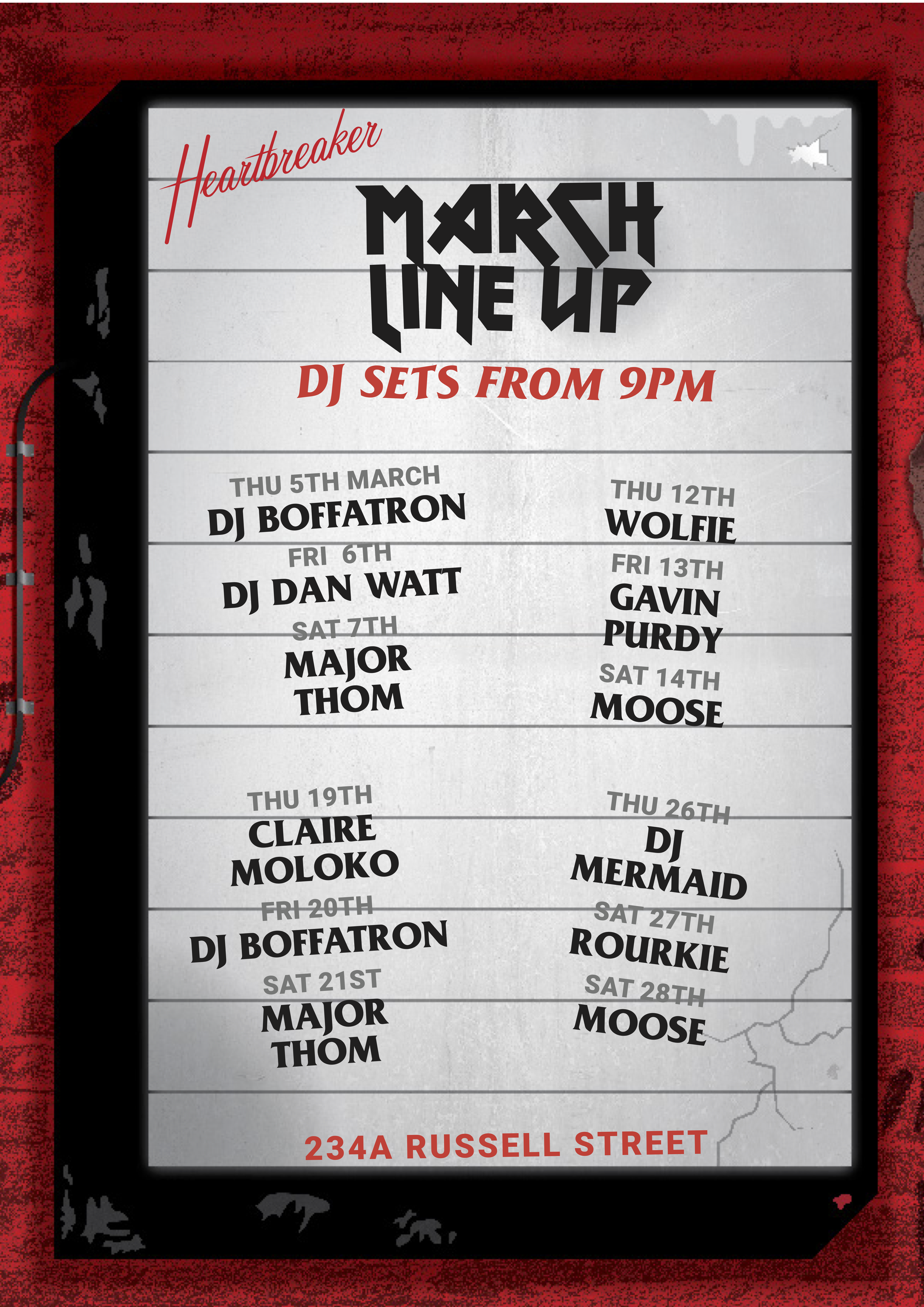 Rock your night away with us and check out the line-up for this month loud til’ late Heartbreakers.
